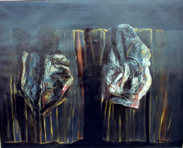 En la Colección Afundación hallamos un nutrido grupo de cinco obras del artista. La más temprana, Ropas (1973), pertenece a la etapa del “objetualismo” pictórico en la que refleja su atracción por los objetos —en particular los tejidos— como testimonio de nuestra propia existencia. Las dos obras de 1979 se encuadran en un periodo de transición en el que Datas rompe las formas —en este caso rostros y figuras humanas— de tal modo que las imágenes resultantes adquieren un carácter trágico. En la pintura de 1980 compone una tétrica figura femenina de estructura alambrada, filiforme, flotante en el espacio. La influencia del action painting se muestra con gran intensidad en la obra más tardía (1999), en la que sobre un lienzo de grandes dimensiones —su formato predilecto— representa un personal y colorido paisaje habitado por sugeridos rostros; simula un auténtico campo de batalla.